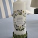 The pressed and dried flowers and leaves are melted onto the candle's surface. The candle is then dipped in hot wax, which coats the floral motif and inscription with a fine protective layer.